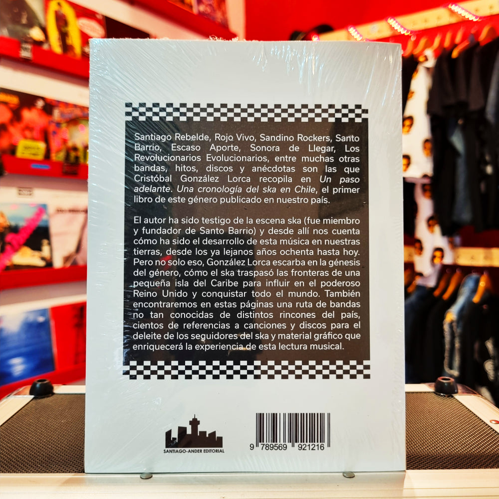 Santiago Rebelde, Rojo Vivo, Sandino Rockers, Santo Barrio, Escaso Aporte, Sonora de Llegar, Los Revolucionarios Evolucionarios, entre muchas otras bandas, hitos, discos y anécdotas son las que Cristóbal González Lorca recopila en Un paso adelante. Una cronología del ska en Chile, el primer libro de este género publicado en nuestro país. El autor ha sido testigo de la escena ska (fue miembro y fundador de Santo Barrio) y desde allí nos cuenta cómo ha sido el desarrollo de esta música en nuestras tierras, desde los ya lejanos años ochenta hasta hoy.
